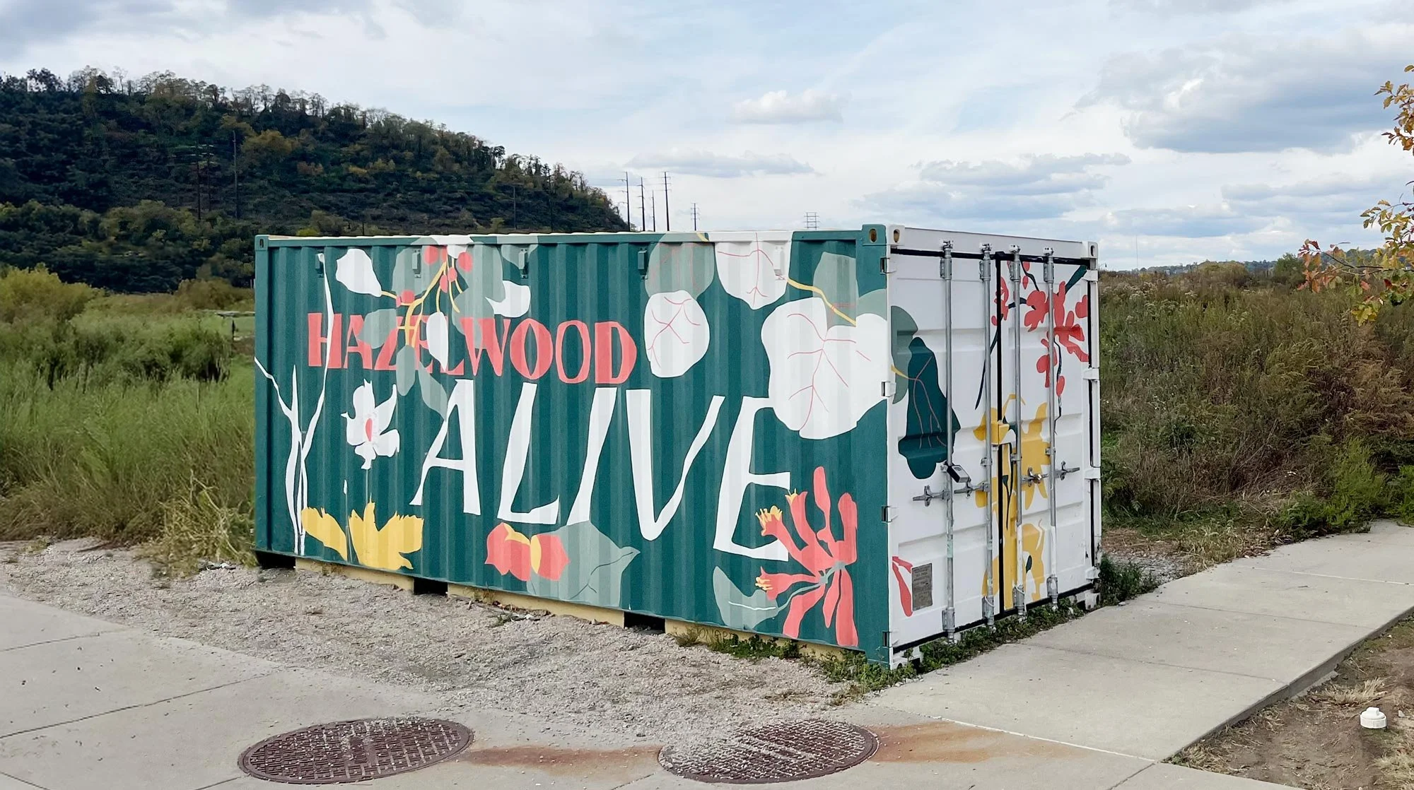 Inspired by Pennsylvania native plants, an ordinary storage container in Hazelwood Green provided the perfect canvas for community creativity and collaboration. Little Kelpie devised the design, while artist Edith Abeyta and a team of Hazelwood locals brought the artwork to life.